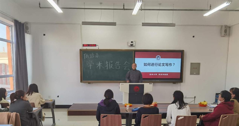 俄语语言文学专业在北湖东区教学主楼433举办主题为“如何进行论文写作”学术报告会,报告由吉林大学公共外语教育学院李庆华教授主讲。俄语系主任张美、副教授穆慧春、李静和全体俄语语言文学专业研究生参加。