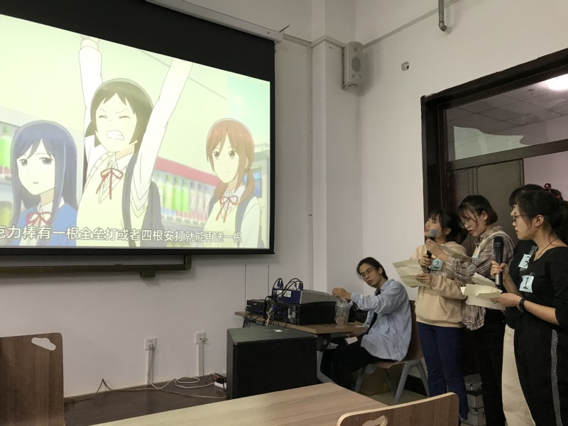于2019年12月16日下午1:30,在我校北湖东区主楼332教室举办了“第十届日语配音大赛”,日语系主任曾妍,教师刘小平、金香梅、何微、王佳璐及日籍教师渡部惠出席并担当本次比赛的评委, 我校18级日语专业全体学生参加了本次比赛。