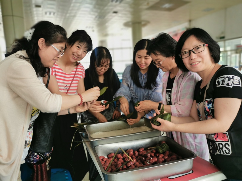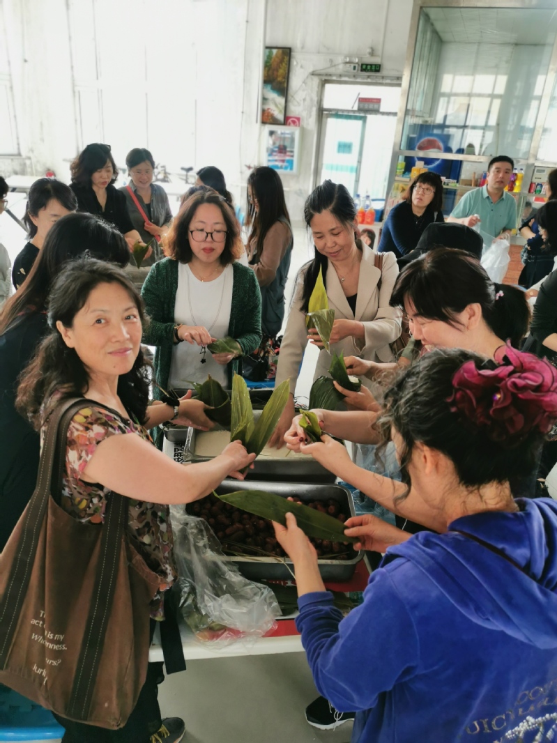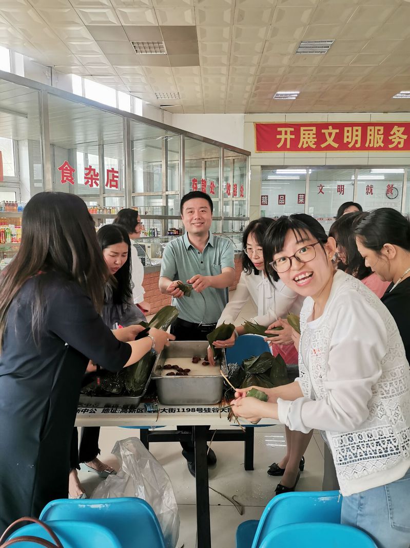 6月5日下午,色情小说 组织全体教职工开展了端午“粽香传真情”活动。林园校区食堂为此次活动精心准备了优质的糯米、大大的红枣、棕绳方便袋等等,师傅们手把手交,老师们认认真真学,现场充满了祥和的节日气氛。