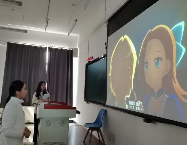 于4月7日下午在北湖东校区主楼450教室举办“第十一届日语配音大赛”。日语系主任曾妍,教师林进、王爱军、龙慧星、徐丽丽、何微、王佳璐及外籍教师渡部惠出席本次比赛。日语专业2019级学生参赛,包英泽、金尹美同学担任主持人。