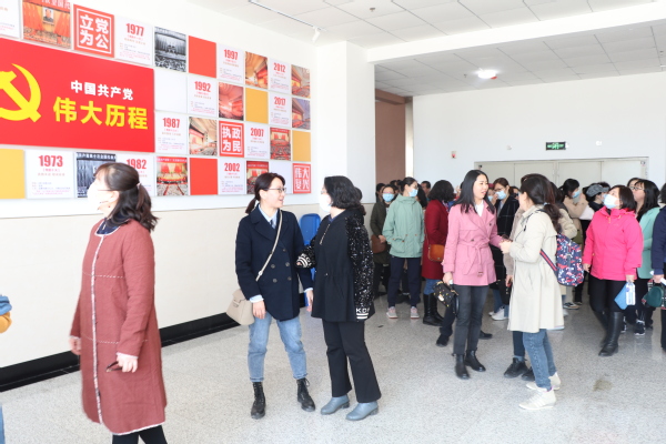 中午12:30时,学院全体教职工在北湖东区主楼集合,环绕校园漫步,感受校园盎然春意,并教育引导全体教职工发扬主人翁精神,积极了解、参与校园规划和设计。全体人员在主楼门前集体合影留念后,进入主楼一起参观了“四史”馆,接受红色教育,对党史及新中国史、 改革开放史、社会主义发展史有了更充分的认识和了解。