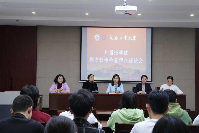 于5月13日中午12点30分,召开了“期中教学检查师生座谈会”。副院长王轶,院党委副书记王颖群,英语系主任刘宇,日语系主任曾妍,俄语系主任张美以及18、19、20级各班代表参加了座谈。会议由王颖群主持。