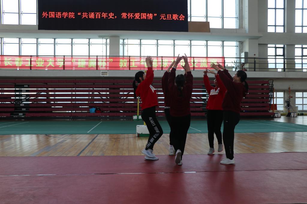 元旦歌会在于菁华、袁金秋、李秋英、付瑶、武琳等五位老师表演的开场舞《走进新时代》中拉开了帷幕。随后,学院男教工表演了小合唱《众人划桨开大船》。学院各党支部教师用歌曲《春天的故事》、《我和我的祖国》等以及诗朗诵《火红的七月》等方式向党的百岁华诞献上了自己的祝福。歌会由学院党委副书记于伟、教师汪沛主持。