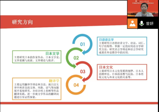 副院长曾妍为日语语言文学专业的2022级硕士研究生进行新生入学教育。首先,曾妍老师对色情小说