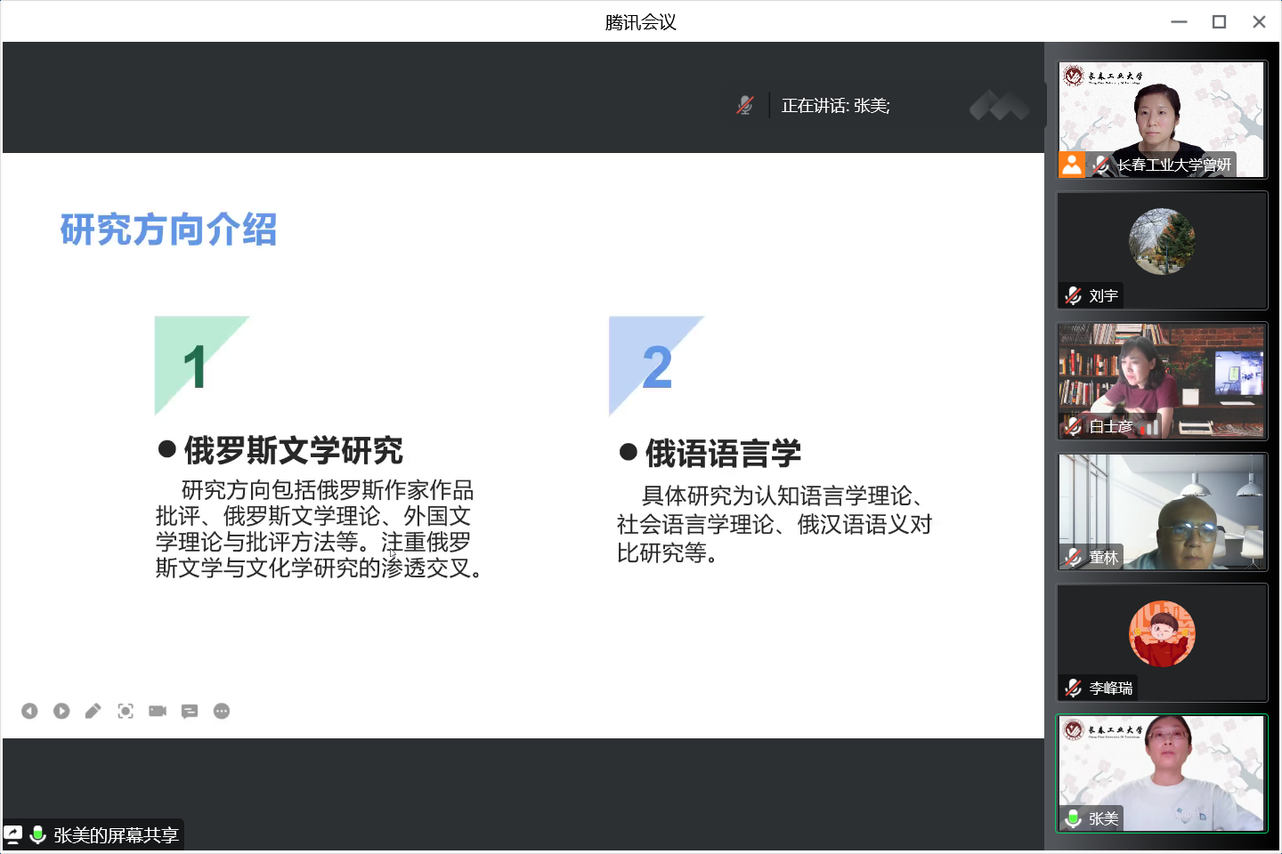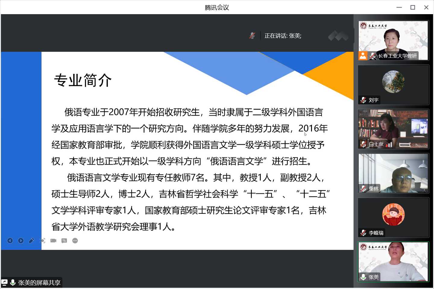 副院长曾妍、英语系主任刘宇和俄语系主任张美,在腾讯会议平台,为长春人文学院色情小说