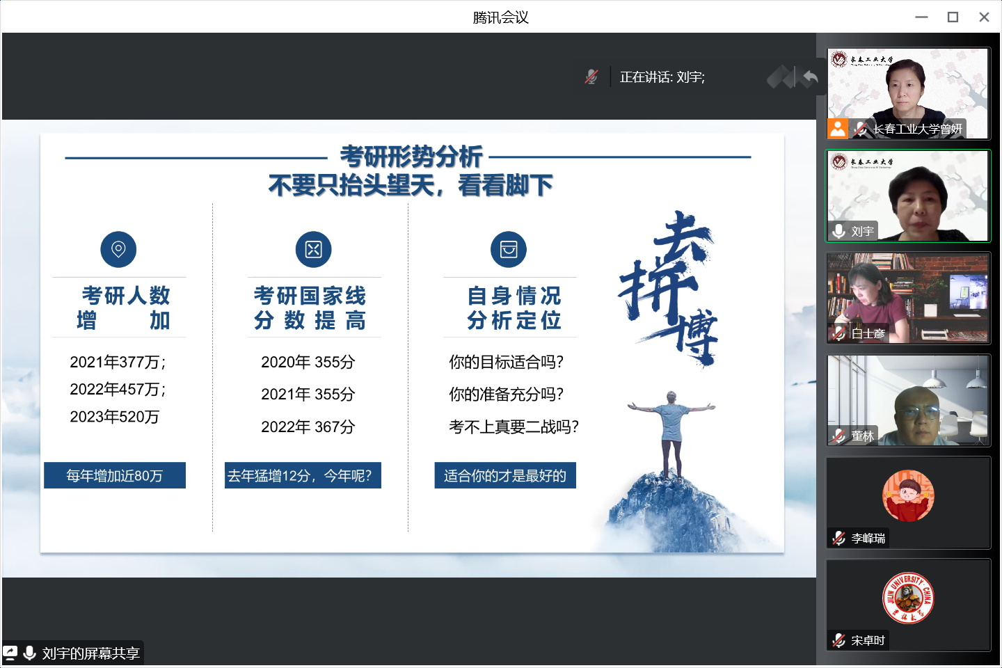 优雅的校园环境、省内单体最大的北湖西区图书馆等优质的教学条件,并从师资力量、课程设置、本学科的特色优势、学生就业和考研问题五个方面对日语语言文学方向进行了细致地介绍,充分展示了本学科的软实力。她希望同学们结合自身实际情况,制定切实可行的考研计划,祝福同学们能够考研成功!实现有价值的人生!