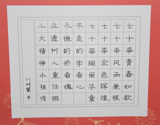 师生纷纷积极参与,踊跃投稿参赛。作品主题明确,形式多样,各具风采。书法作品飘逸灵动,苍劲有力,展现出中国书法文化的艺术魅力。礼赞诗歌朗朗上口,辞藻华丽,抒发着师生赤子热忱之怀。祖国大好河山,党的历史进程、革命精神跃然“画”上,直映眼帘。