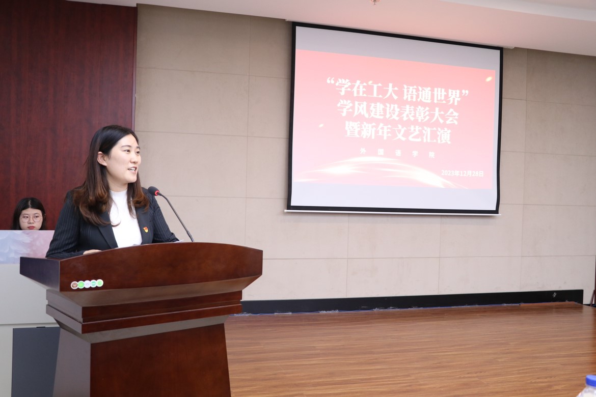 在12月28日于435会议室开展了“学在工大,语通世界”学风建设表彰大会暨迎新年文艺汇演。参加本次会议的领导、嘉宾有色情小说