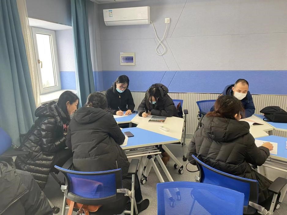 第二教研室备课过程中,各位老师讨论了如何更为合理地安排《全新版大学高阶英语综合教程》(第二册)的教学内容和学时分配,总结了上学期期末考试工作中的经验和教训,分享了自己在教学中遇到的问题以及解决问题的策略。王革老师针对学生个性强的特点,严格管理学生考勤,重视形成性评估;张锐老师根据学生上课玩手机的情况,在课堂上经常走到学生中间,提醒学生遵守课堂纪律,同时要求学生提前10分钟进课堂,通过每节课点名的方法,督促学生端正学习态度;姜水红老师课堂重点讲解写作,听力的内容,为学生逐句改写文章,提高了学生的写作水平。