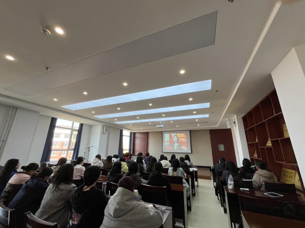 班子成员、教师代表以及学生代表集中进行收看学习。