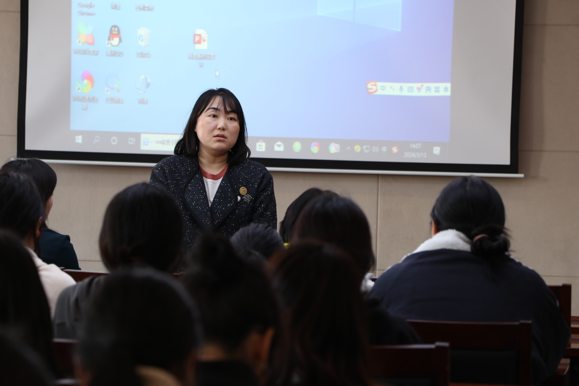 刘明慧老师对同学们的就业问题进行了动员讲解。她详细指出了同学们从现在到毕业应该注意的事项,并鼓励同学们积极主动地与各位老师进行交流,并对同学们提出了几点建议:希望大家树立正确的就业导向观念,把握考研就业形势,鼓励同学们提前做好准备,结合自身实际情况精准定位。
