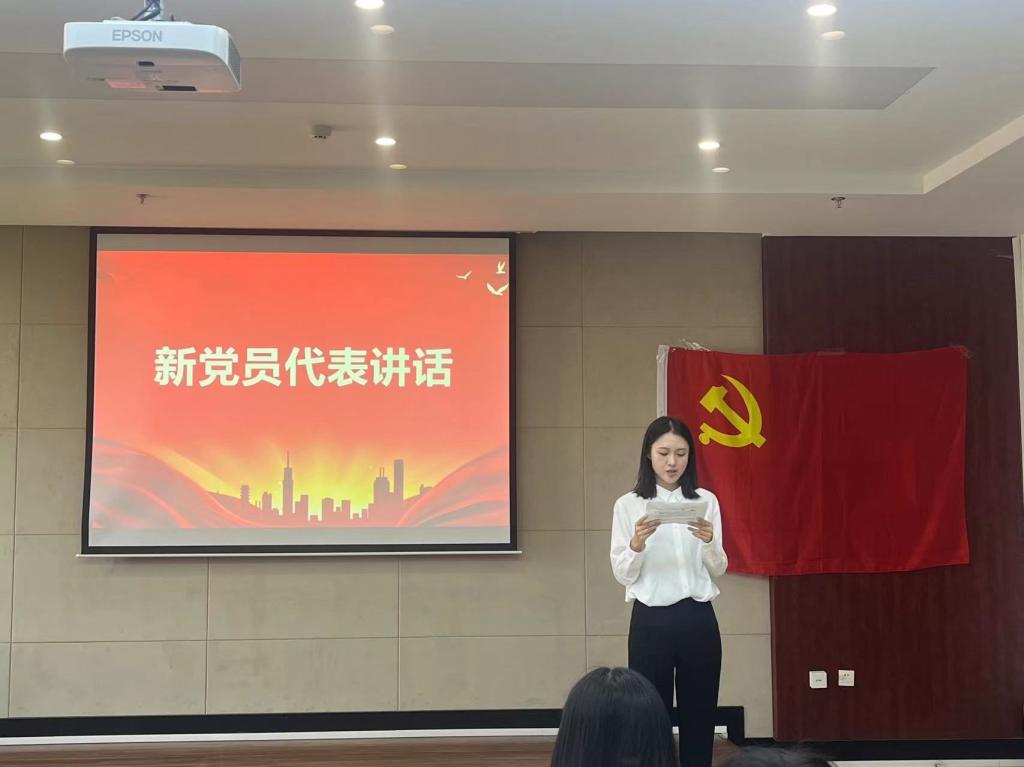 随后吴云坤同志作为老党员代表,讲述了自己入党时的激动心情,表达了对新党员的种种期望。新党员代表赵彩彤同志在发言中,介绍了自己在党组织的教育引领和党员同志的帮助下,不断实现思想进步、转变和升华的心路历程,表达了踏实服务奉献,为共产主义奋斗终生的信念和决心。