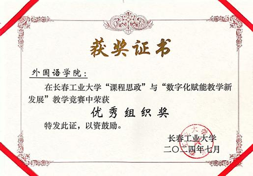 凭借出色的组织能力在此次比赛中荣获优秀组织奖。
