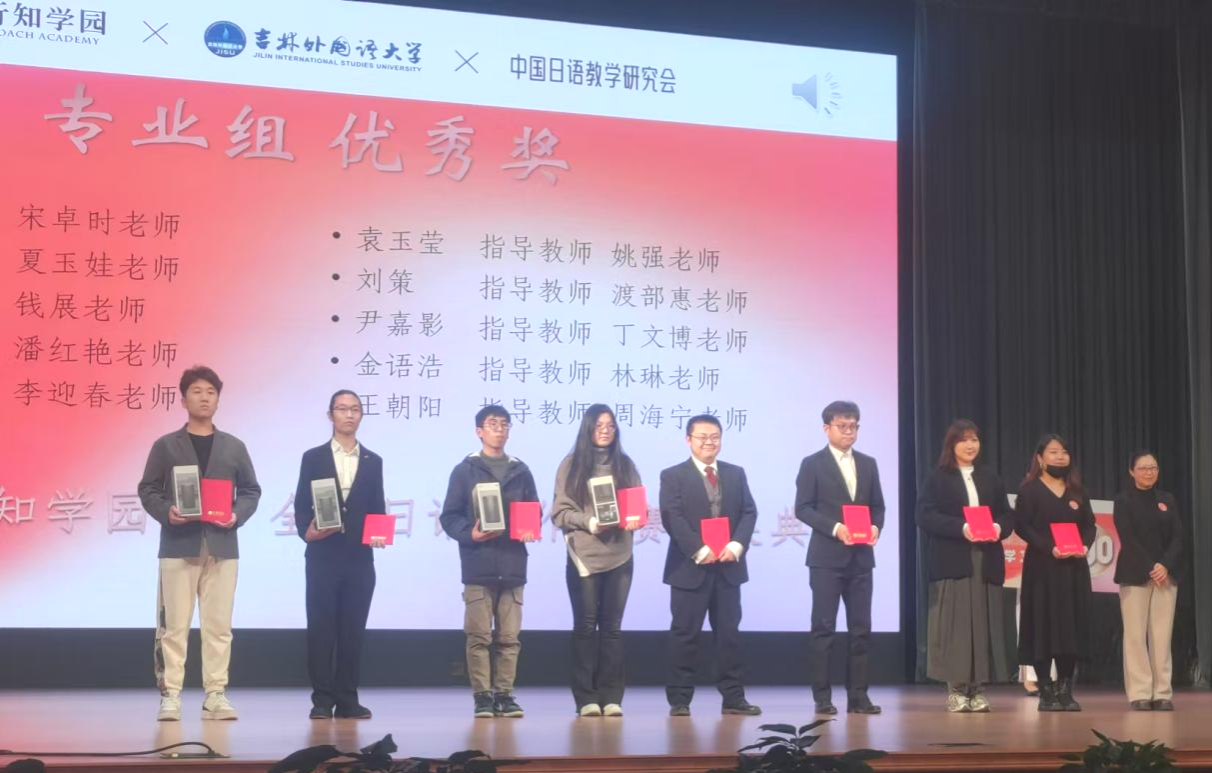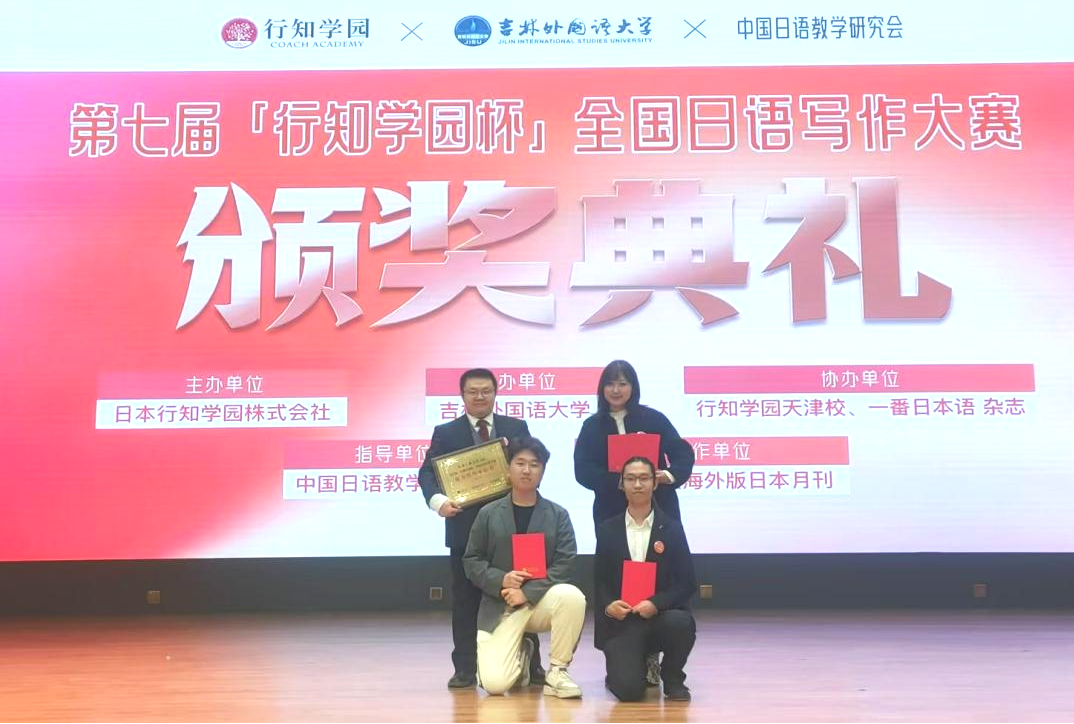 日语专业2022级学生史洪彰和刘策两人均荣获了“专业组最优秀奖”的好成绩,指导教师宋卓时、渡部惠老师获得“优秀指导教师”的荣誉称号。