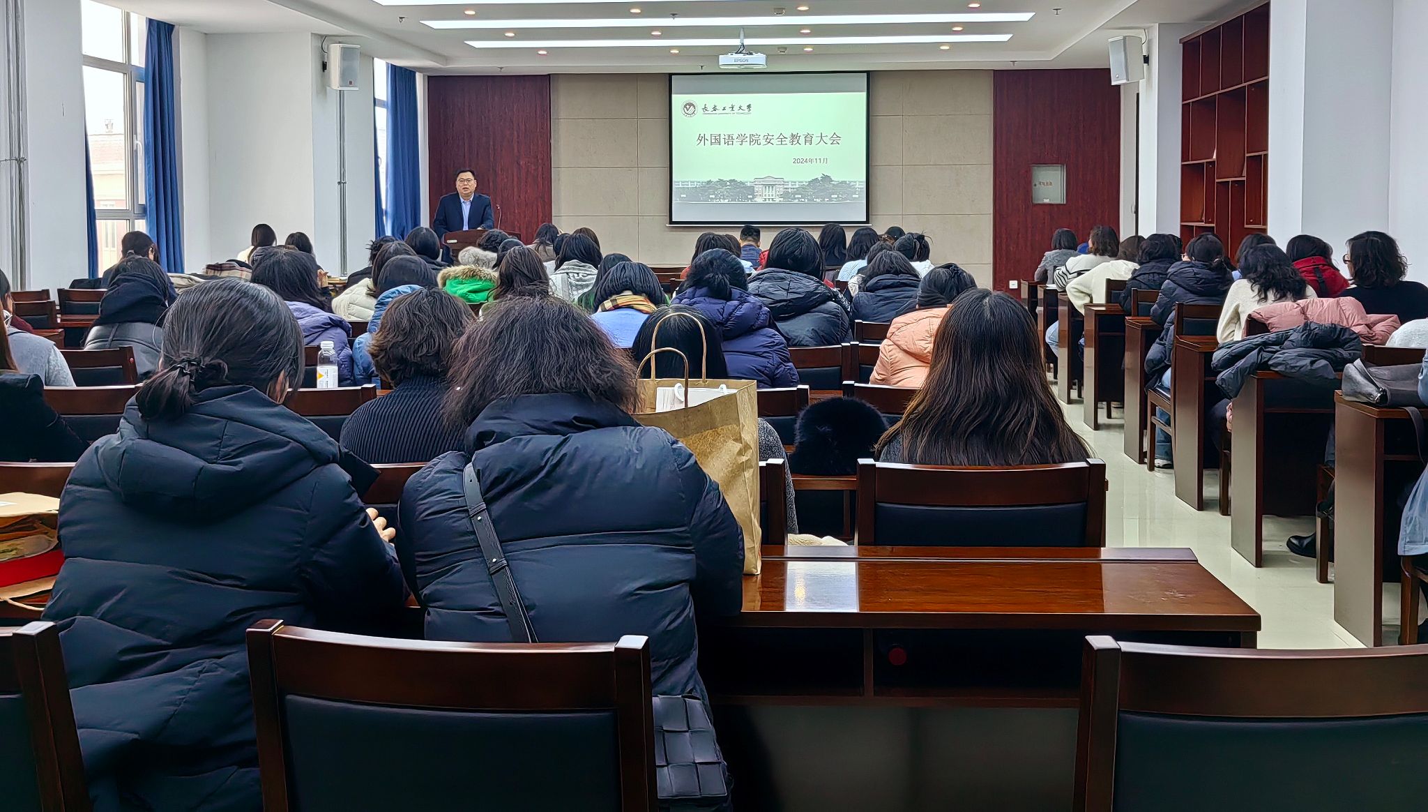 于2024年11月27日下午,在学院会议室召开了安全教育大会。全体教职工参加了此次大会。