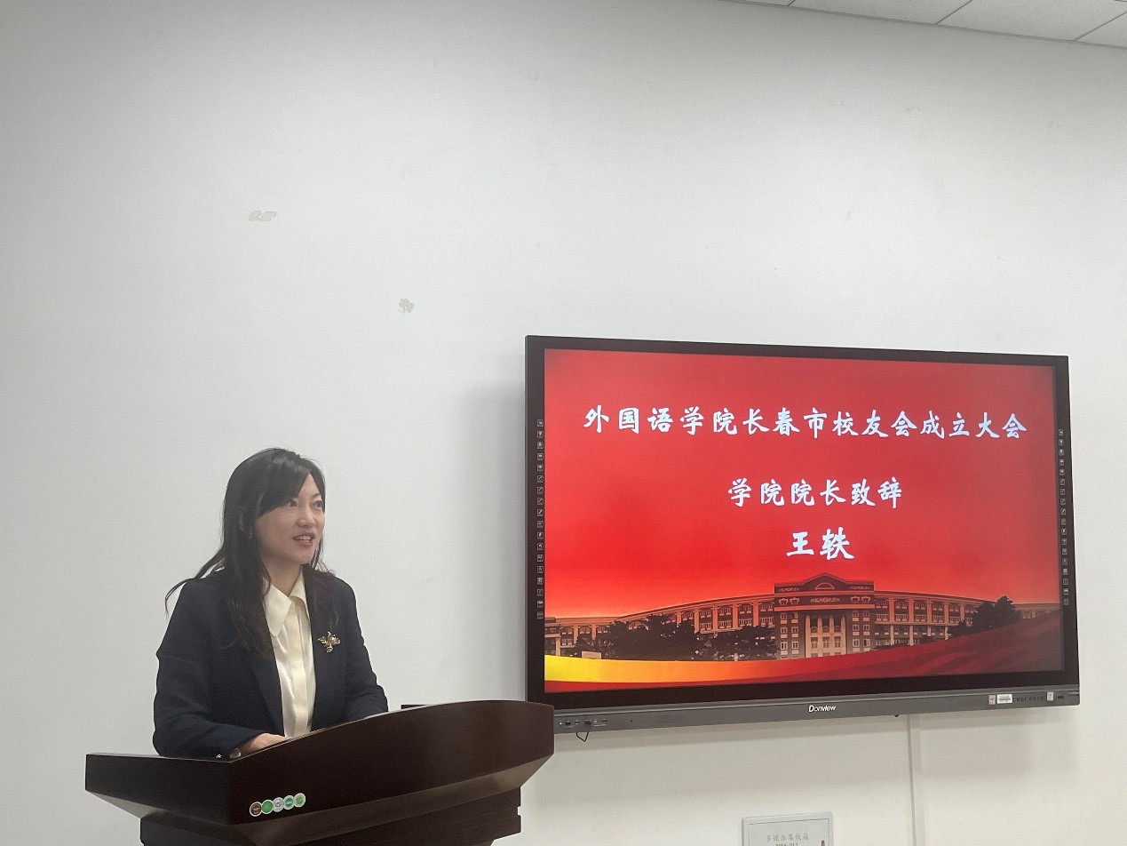 王轶在致辞中向学院长春市校友会的成立表示热烈祝贺,并对筹委会辛勤付出和长春市校友们长期以来对学院的关心与支持致以诚挚感谢。她向参会的校友们详细介绍了学院近年来在学科建设、人才培养、国际交流等方面取得的显著成果,指出校友是学院最宝贵的财富与最可信赖的力量,希望校友会能够充分发挥桥梁纽带作用,积极促进校友与学院在教学科研、实习就业、文化传承等多方面的深度合作,实现学院与校友的互利共赢、携手共进;还表示学院全体师生一直都会关注和帮助校友的发展。