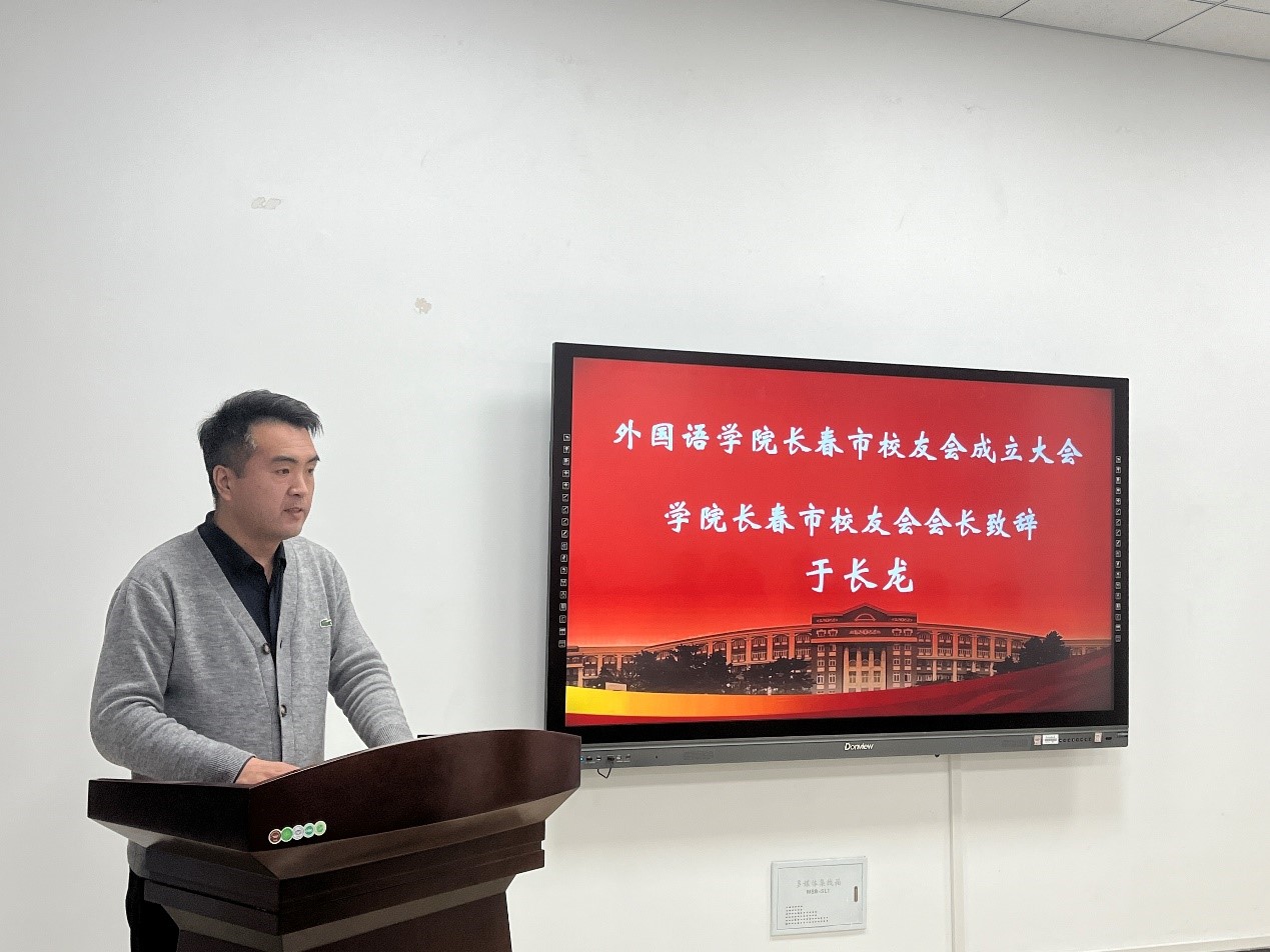学院长春市校友会会长于长龙在讲话中表达了个人对学院悉心培养的感激之情及未来带领长春市校友会发展的越来越好的坚定信心。他表示,校友会将致力于为校友们打造一个交流互助、资源共享的优质平台,促进校友在个人事业与社会贡献方面的双提升,同时积极加强与学院的互动合作,回馈母校的教育之恩。