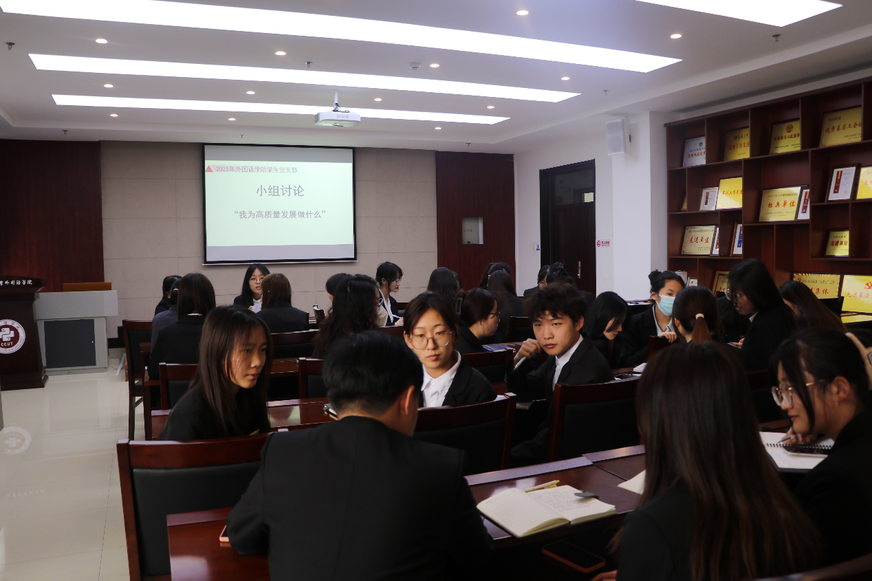 学生党支部组织全体入党积极分子、发展对象以及学生党员开展小组讨论学习活动,围绕 “我为高质量发展做什么”这一主题进行讨论。