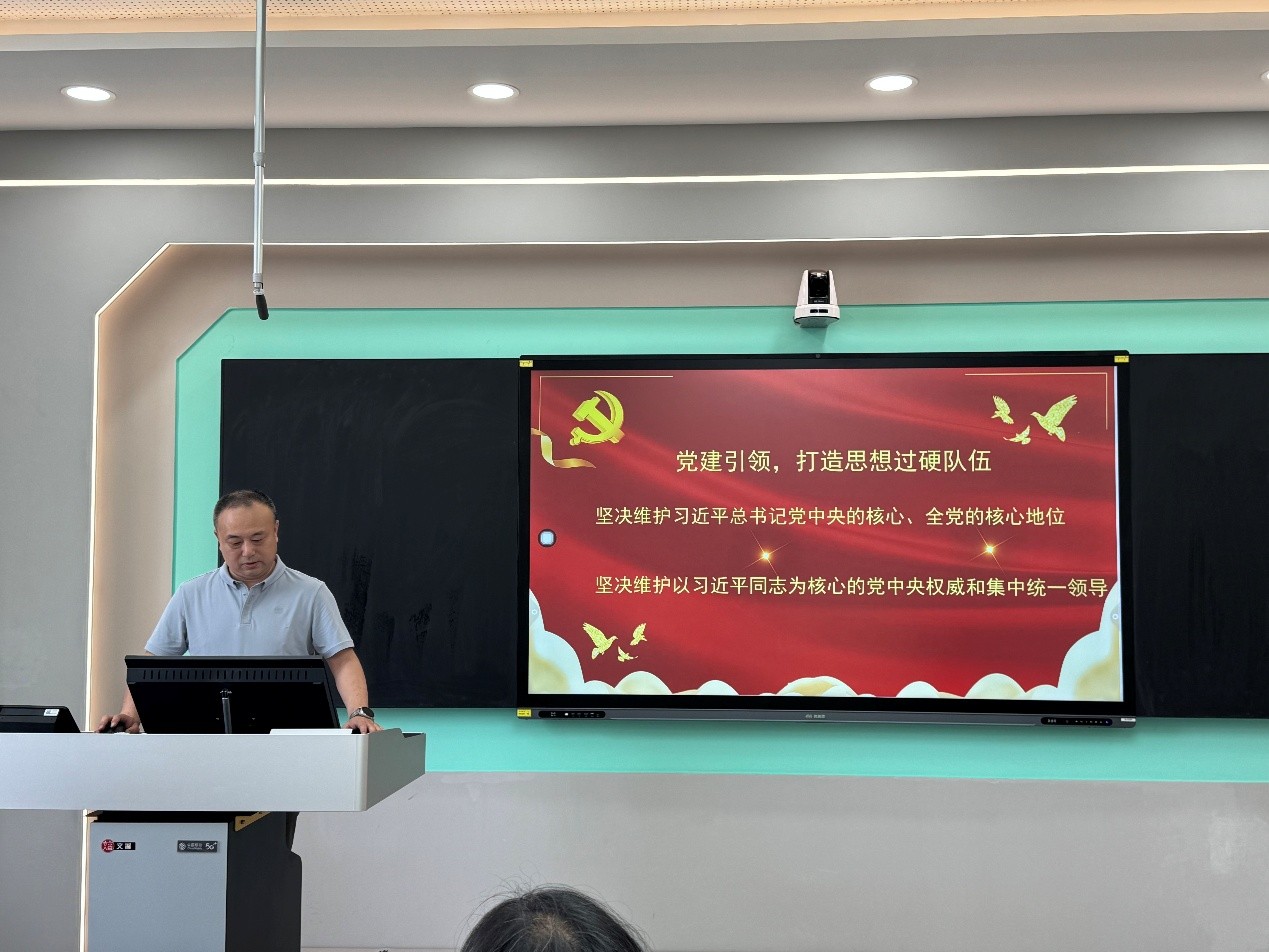 主题党日活动中,英语系和语言训练中心党支部书记李笑老师、英语系主任刘宇老师、英语系副主任赵艳宇老师,结合自身工作从如何助力校院高质量发展角度出发分别进行交流发言。
