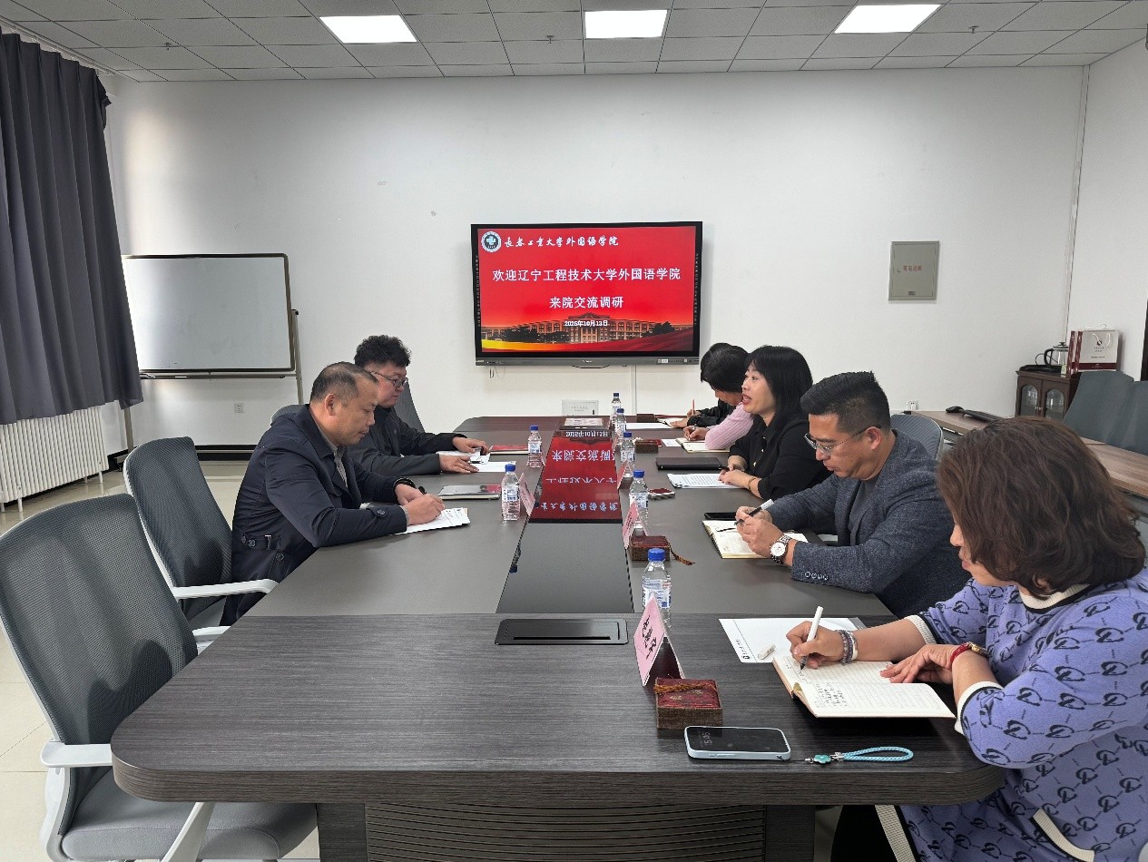 党委副书记刘凤利,英语系主任刘宇,公共外语教学部主任孙莉和英语系副主任赵艳宇参加调研交流活动。