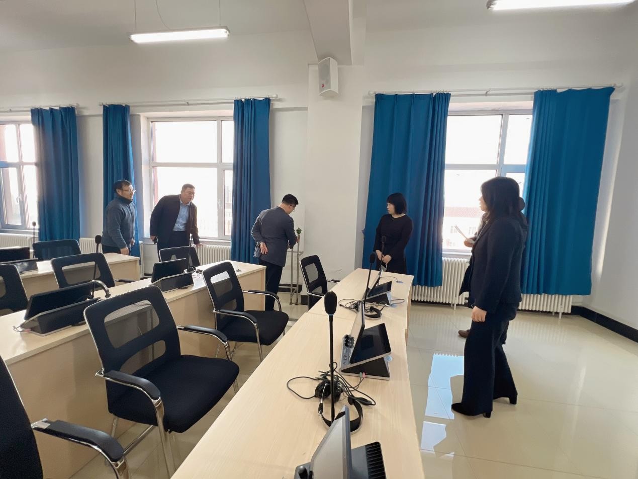 在实验室及各类教学场所,检查小组聚焦教学设备安全与运行保障、电线线路及供暖设备,开展全方位、精细化排查。检查组重点检查实验室电脑、语音终端、同声传译设备、音响系统、投影设备等核心教学仪器的运行状态,细致检查线路连接的规范性与安全性,严防线路老化、接触不良等安全隐患。