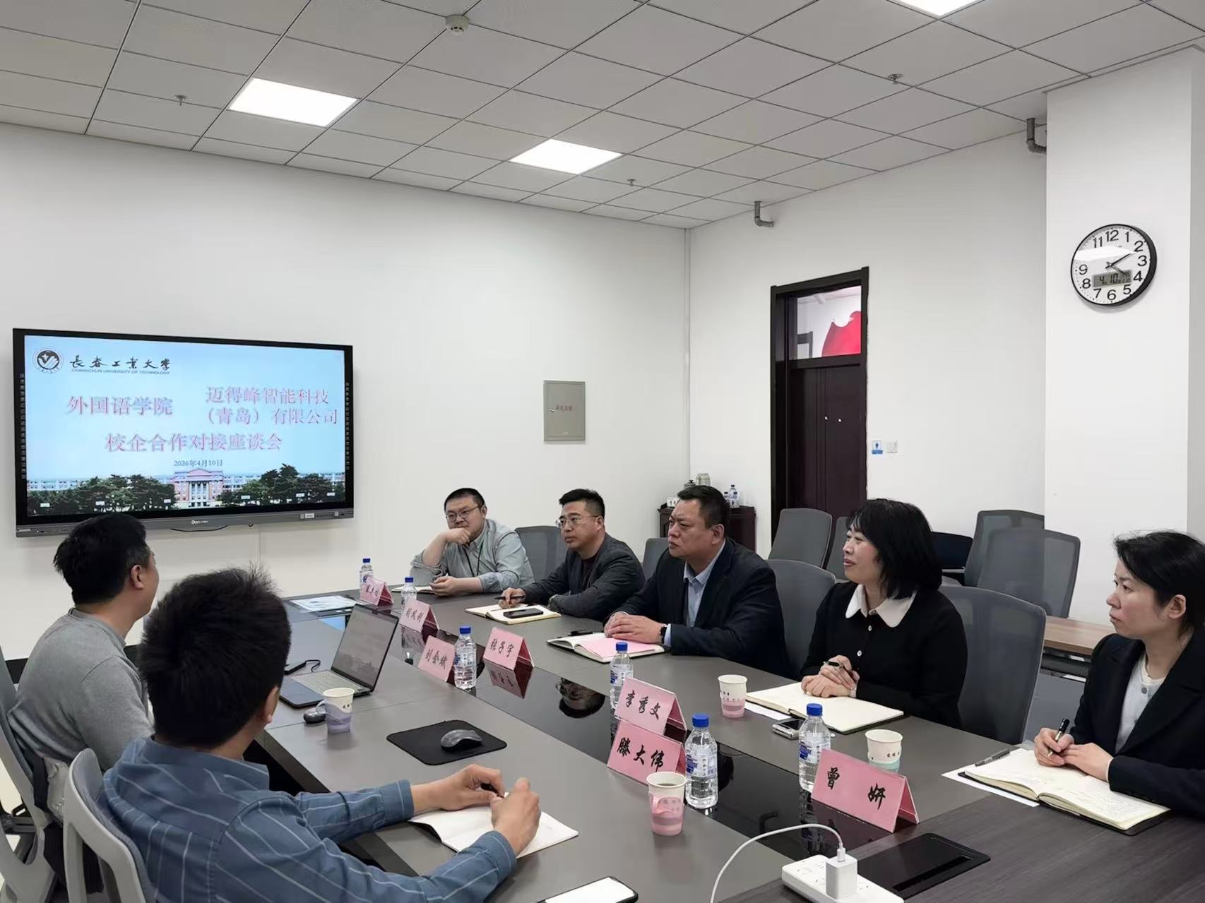 与迈得峰智能科技(青岛)有限公司在学院会议室召开校企合作对接座谈会。双方围绕课程共建、人才培养模式创新、校内实习基地建设等核心议题展开深入研讨、坦诚交流,携手共谋校企协同育人高质量发展新篇章。
