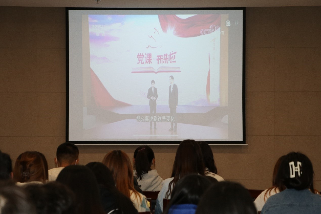 在会议室435组织全体学生党员、入党积极分子观看学习中组部《党课开讲啦》第3期节目——《党的伟大成就》(杨凤城主讲)。