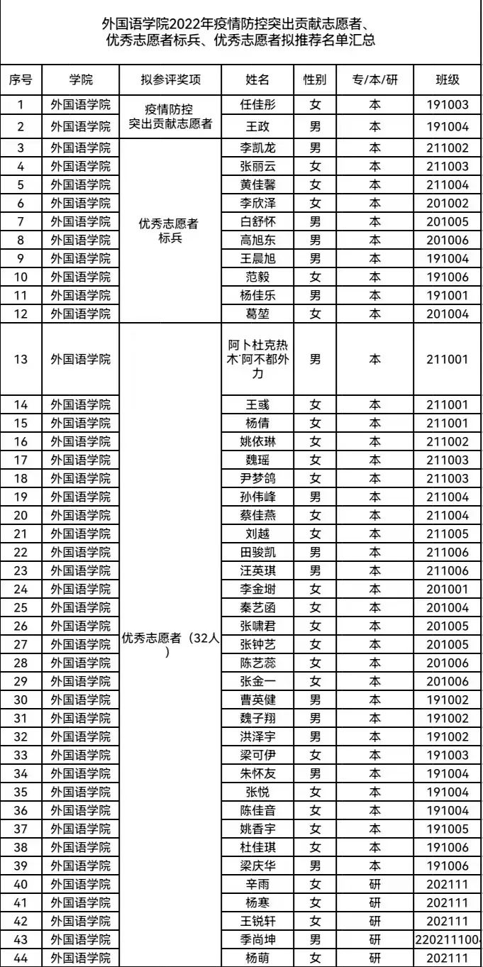 现公布色情小说 拟推荐2022年疫情防控突出贡献志愿者、优秀志愿标兵、优秀志愿者名单如下: