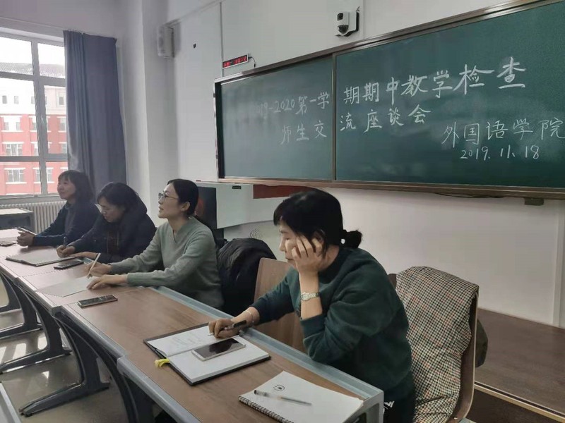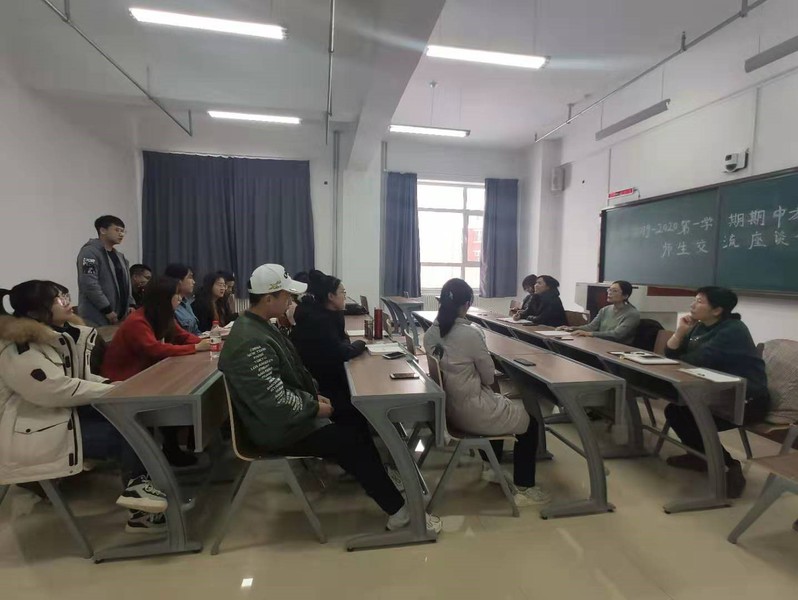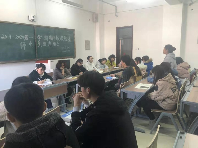 大一至大四的班委在教学院长周爽老师,党委副书记王颖群老师,三位系主任,教学秘书及学生辅导员的组织下,分别于11月15日、18日12:30-13:30在东区主楼333教室召开2019-2020第一学期期中教学检查师生交流座谈会。