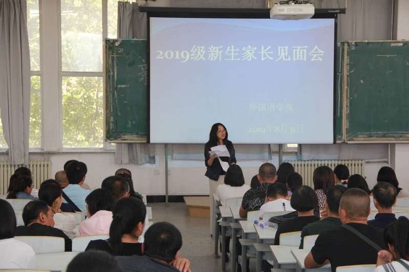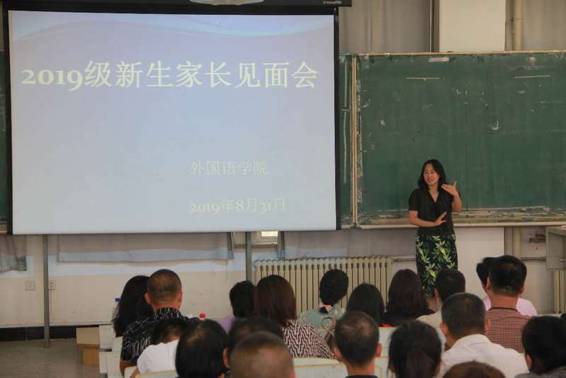 2019级新生家长见面会在教图楼201准时召开。学院党政领导班子成员以及英、日、俄三系的主任和支部书记共同出席了此次见面会。