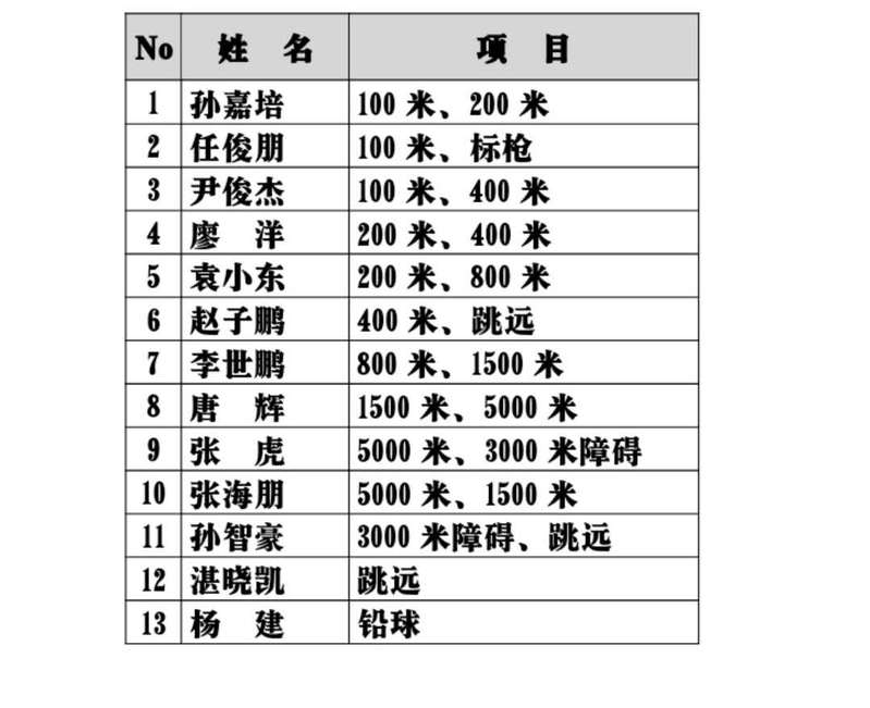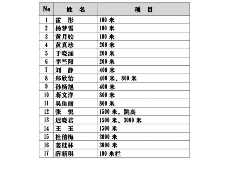 第四十届田径运动会参赛人员名单