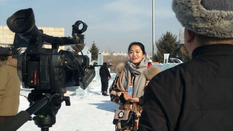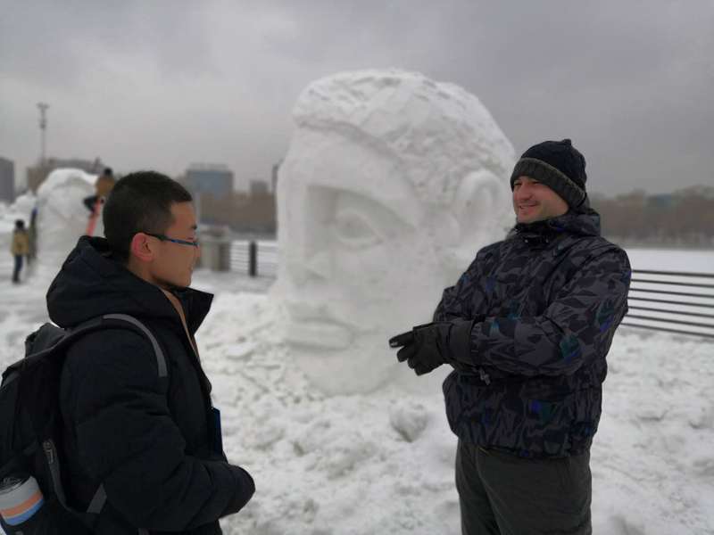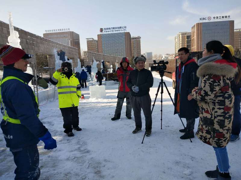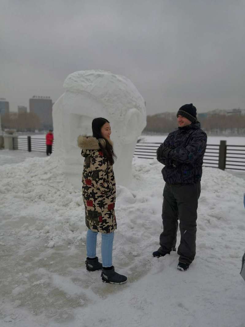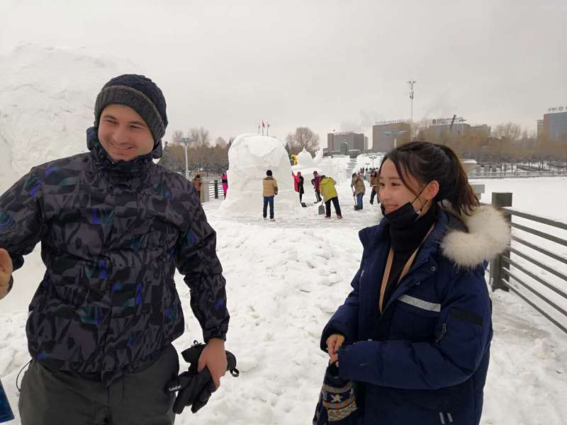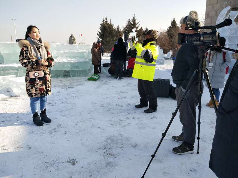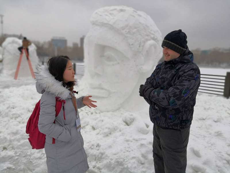 木兰国际交流志愿者协会志愿者们赴长春国际雕塑公园,为“冰雪缘,雕塑情”第三届中国长春国际冰雪雕塑邀请展担任现场口译。