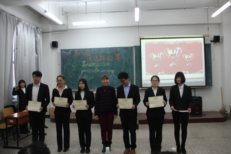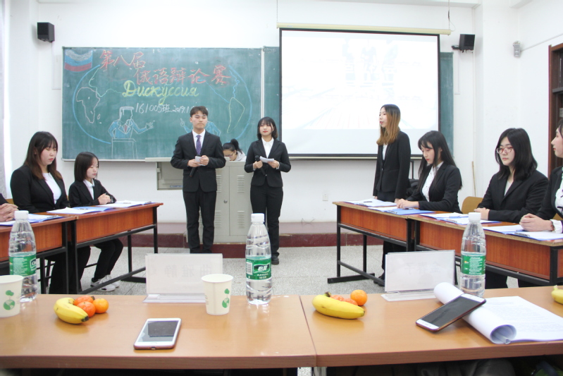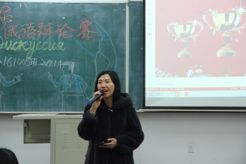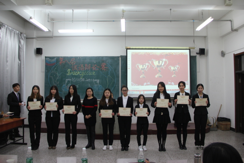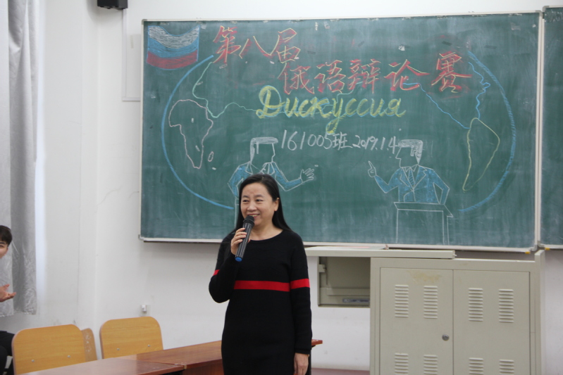 俄语系在教图楼704举行了第八届俄语辩论赛。俄语系系主任曲雅静老师携俄语系全体老师出席了本次大赛。