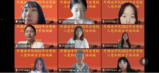 此次培训组织了4讲专题党课,学院院党委副书记于伟、英语系语言训练中心联合党支部书记李笑、学生党支部书记刘明慧、日语系教师宋卓时结合学生思想、学习和工作实际,分别围绕《让信仰点亮人生》、《从战“疫”看共产党员的先锋模范作用》、《弘扬伟大建党精神》和《中国共产党领导与我国新时代文化外交》进行了系统讲解,引导全体学员对现阶段党的理论知识,中国特色社会主义理论等内容进行更为深入的学习,对青年大学生的使命和责任提出了新要求,要提高党性修养,成长成才,为祖国建功立业。
