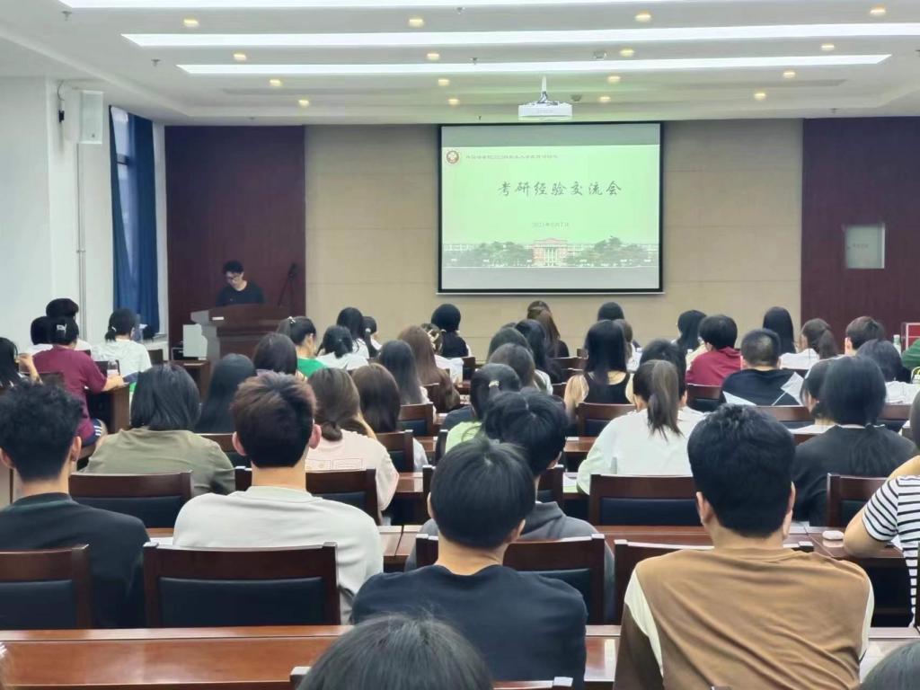 于435教室召开考研经验分享交流会。会议由刘明慧老师主持,本校升学研究生及2023级新生积极参会。