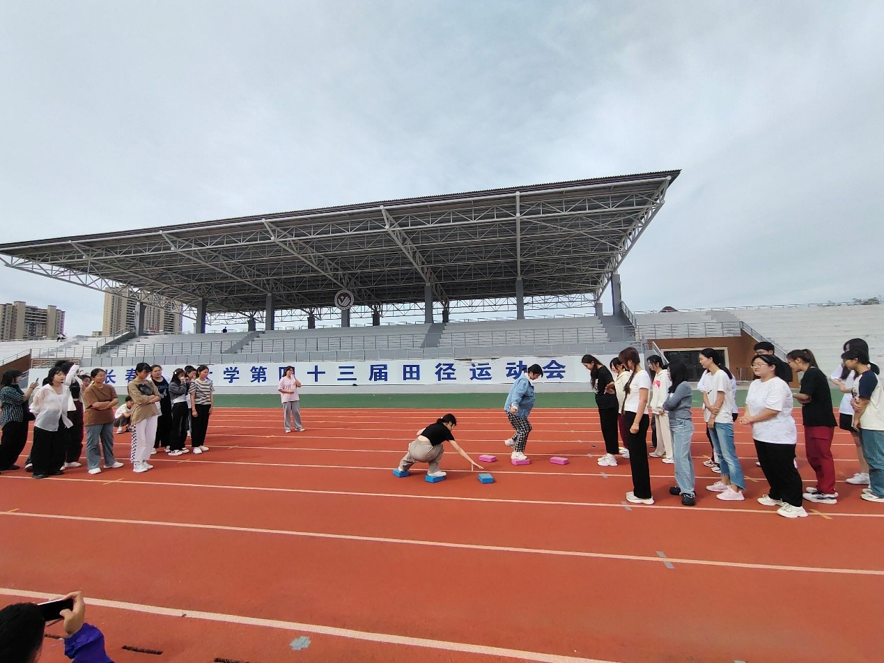 “步步为营”比赛同样扣人心弦,同学们小心翼翼将手中泡沫材质砖头踩在脚下交替前行,直至到达终点。