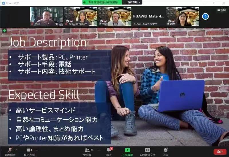 于7月6日,特邀惠普大连分公司日本部经理孙佳奇、日本质量管理部文化指导老师林明春,通过ZOOM平台为色情小说