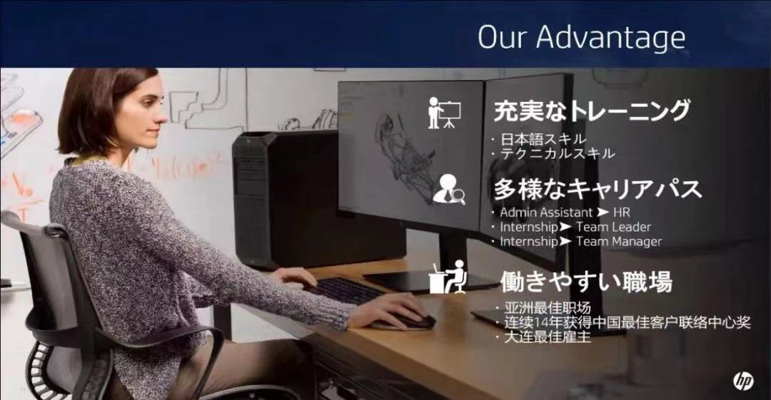 宣讲会上孙佳奇经理详细介绍了惠普大连分公司的办公环境、多样的团建活动、实习培训、面试入职流程、岗位所需技能等相关内容。林明春老师以「コミュニケーションスキール」(沟通技巧)为主题,从沟通是什么、沟通的方法以及在沟通中情商的重要性三个方面为同学们进行了生动的讲解。